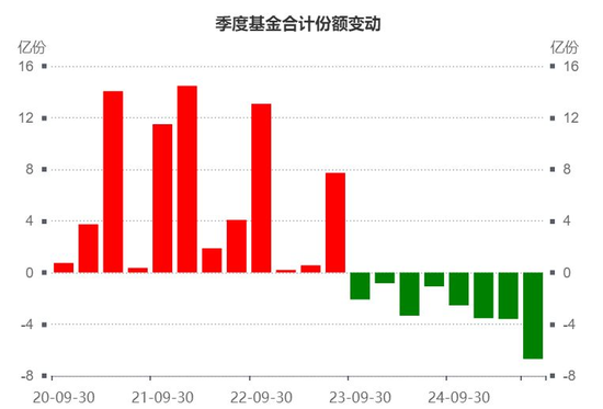 其次,葛兰当前在管总规模较2022年峰值大幅缩水。2025年二季报显示,截至今年6月30日,中欧医疗创新基金份额仅60.24亿份,资产净值81.14亿元,较其历史峰值明显收缩。值得注意的是,二季报显示的基金份额连续八个季度下降,即连续八个季度处于净赎回状态。这与基金净值处于高位时投资者越跌越买的表现截然不同。